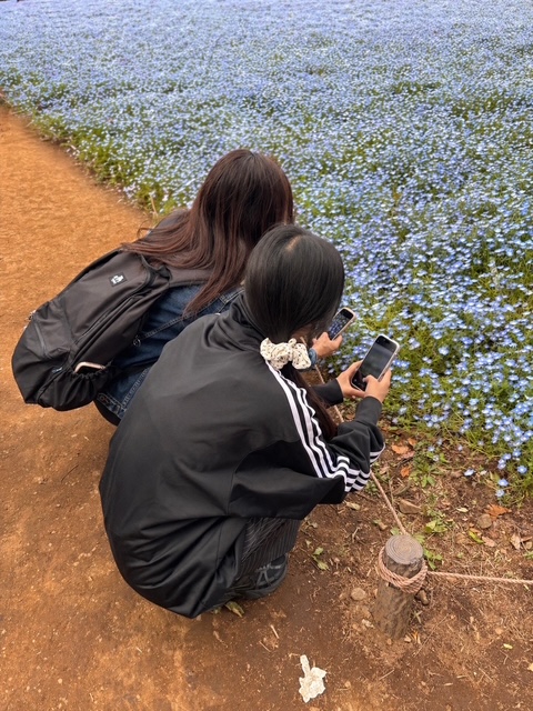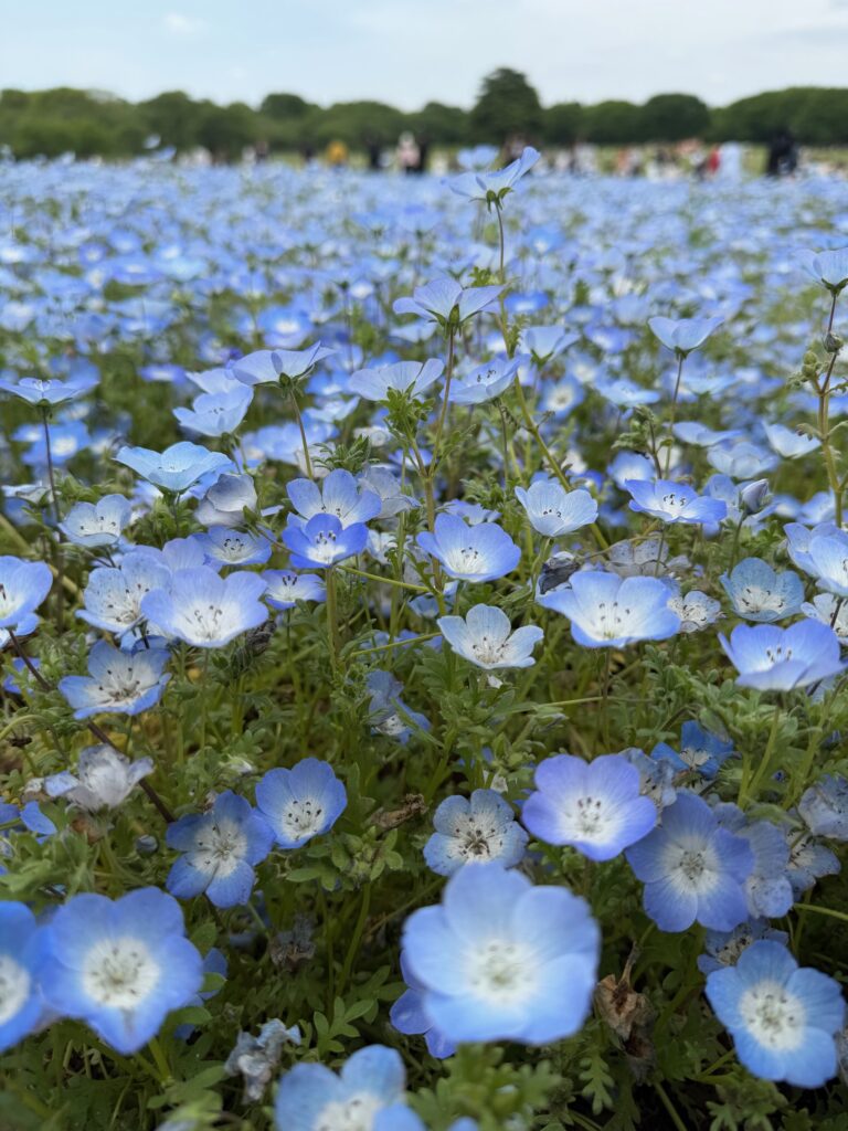 一面に広がるネモフィラの青い景色はとても美しく、空と溶け合うような光景に心が癒されました。
